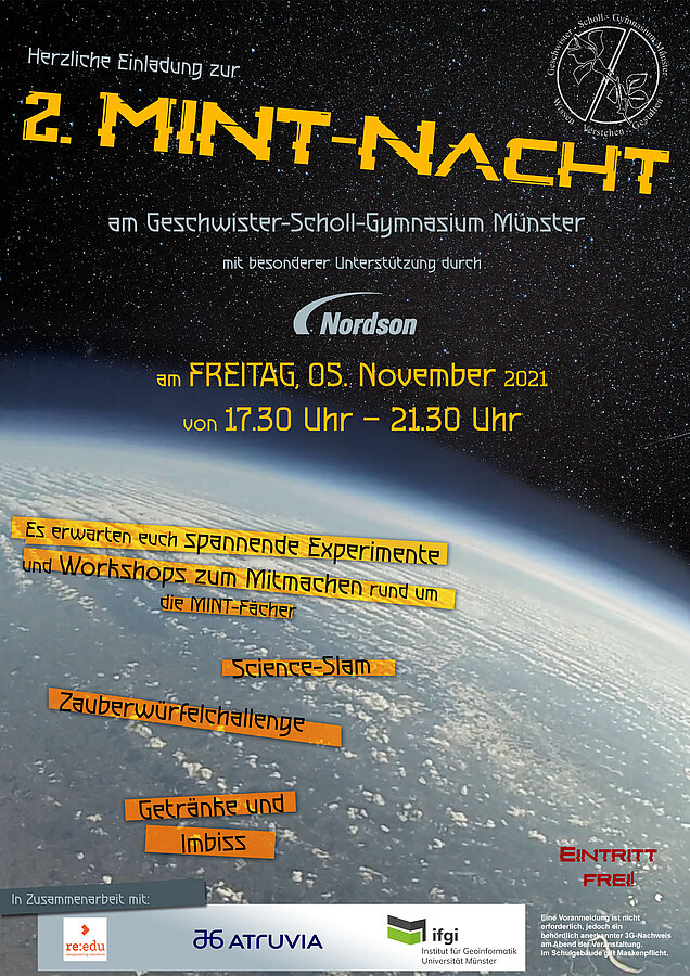 Obwohl es zwischenzeitlich nicht danach ausgesehen hat! Am Freitag, den 05.11.2021 ist es wieder soweit! Am Geschwister-Scholl-Gymnasium findet die zweite MINT-Nacht statt!