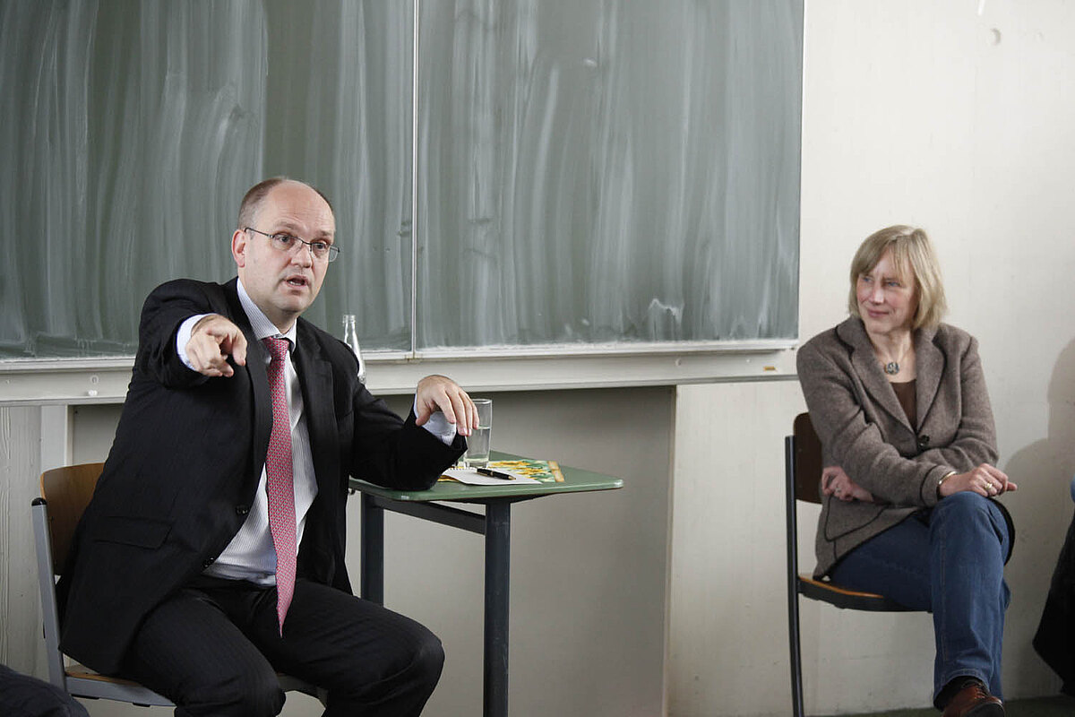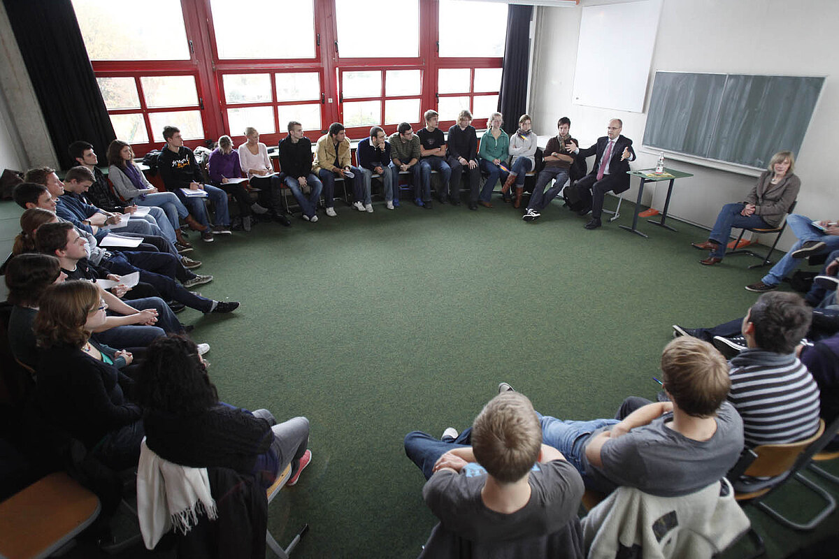 Neske diskutierte mit den Schülern des Leistungskurses Wirtschaft der Jahrgangsstufe 13 über die Finanz- und Wirtschaftskrise.