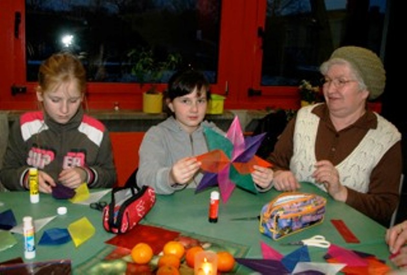 Nach dem arbeitsintensiven Nachmittag schmücken nun unter anderem Giebelhäuser und Transparent-Sterne die Fensterscheiben im Raum der 5b und wunderschön verzierte Naturholzsterne hängen von der Decke. Dass eine solche gemeinsame Einstimmung auf die Vorweihnachtszeit auch im fünften Schuljahr noch möglich ist, freute einige Eltern besonders. Und die Kinder hatten ja noch länger etwas davon: Im weihnachtlich geschmückten Klassenraum geht das Lernen sicherlich noch einmal motivierter und besser von der Hand.