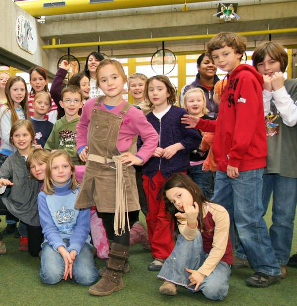 Auf lockere Weise möchten sie Kinderhauser Grundschüler an das Theaterspielen heranführen. „Vielleicht entstehen daraus an den Grundschulen sogar neue Theater-Gruppen“, denkt Sowaro Touray von der Schülerstiftung bereits weiter. Zusammen mit Greta Schulte-Eversum, Christian Lennartz, San Sa Nie und Siriwan Keizers zeigte sie gestern drei Stunden lang den Sechs- bis Zehnjährigen erste Grundübungen des Improvisationstheaters: Gefühle ausdrücken in Kauderwelsch, Sportler mimen und kleine Szenen spielen. Wer eine Verschnaufpause benötigte, konnte zu den kostenlosen Getränken greifen, bereitgestellt und bezahlt von der Schülerstiftung Courage.