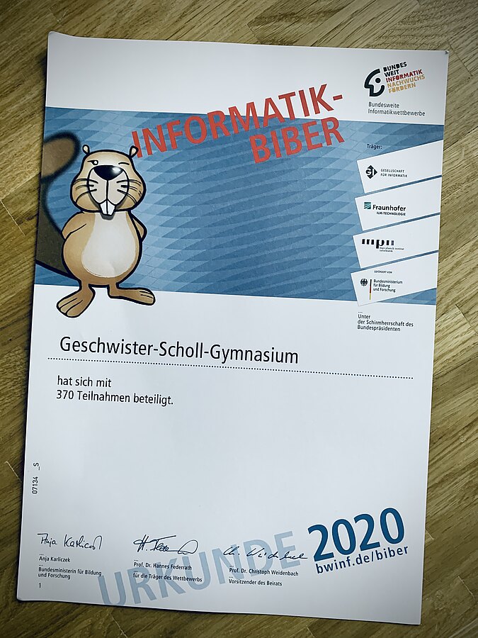 Trotz Corona haben im Jahr 2020 370 Schüler*innen des Geschwister-Scholl-Gymnasiums am Informatik-Biber-Wettbewerb teilgenommen.