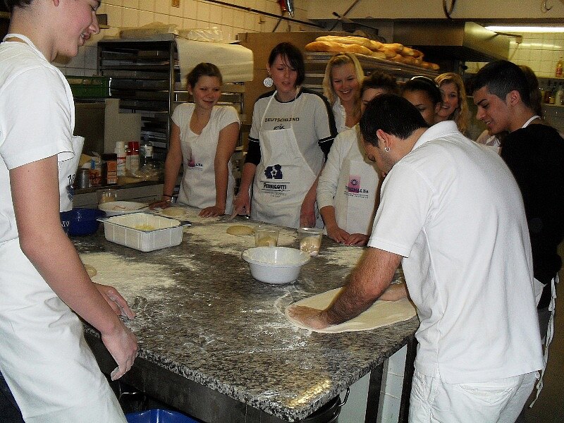 Die Schülerinnen und Schüler des Italienischkurses der Jahrgangsstufe 11/EF von Herrn Tobias Zander besuchten im Rahmen ihres Unterrichts das Ristorante Italiano Mocca d’Or. Auf die Einladung des Restaurants hin erlebten die Schülerinnen und Schüler an diesem Tage einen Event der ganz besonderen Art. Angeleitet durch den maestro della pizza, Sabatino, entwarfen die Schülerinnen und Schüler ihre eigenen Pizzavariationen, die sie dann natürlich auch selbst genießen durften. Neben dem kulinarischen Einstand erfuhren die Schülerinnen und Schüler auch eine umfangreiche Einführung in die italienische Kultur. So lernten sie neben der Topographie Italiens auch verschiedene kulturelle Nuancen des Landes wie die weltbekannte italienische Gestik kennen. In Zusammenarbeit mit Arianna Carone, Fremdsprachenassistentin am GSG, gelang es Herrn Zander seinem Kurs Italien ein großes Stück näher zu bringen. Aufgrund des äußerst positiven Feedbacks der Schülerinnen und Schüler sind weitere Veranstaltungen im Mocca d’Or geplant.