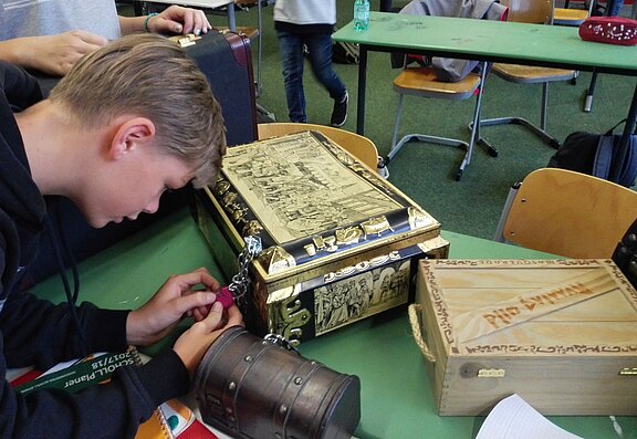 Die Idee: Eine Schulklasse wird im Klassenraum eingesperrt und muss sich in Teamarbeit durch ein Gewirr von geheimnisvollen Schatzkisten, Mathe-Rätseln und Zahlenkombinationen durcharbeiten, um endlich in der letzten Schmuckschatulle den befreienden Schlüssel nach draußen zu finden.