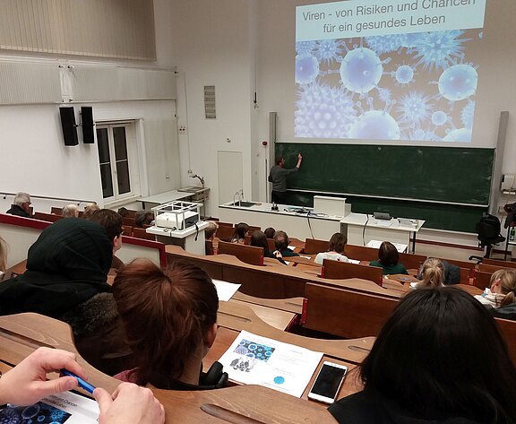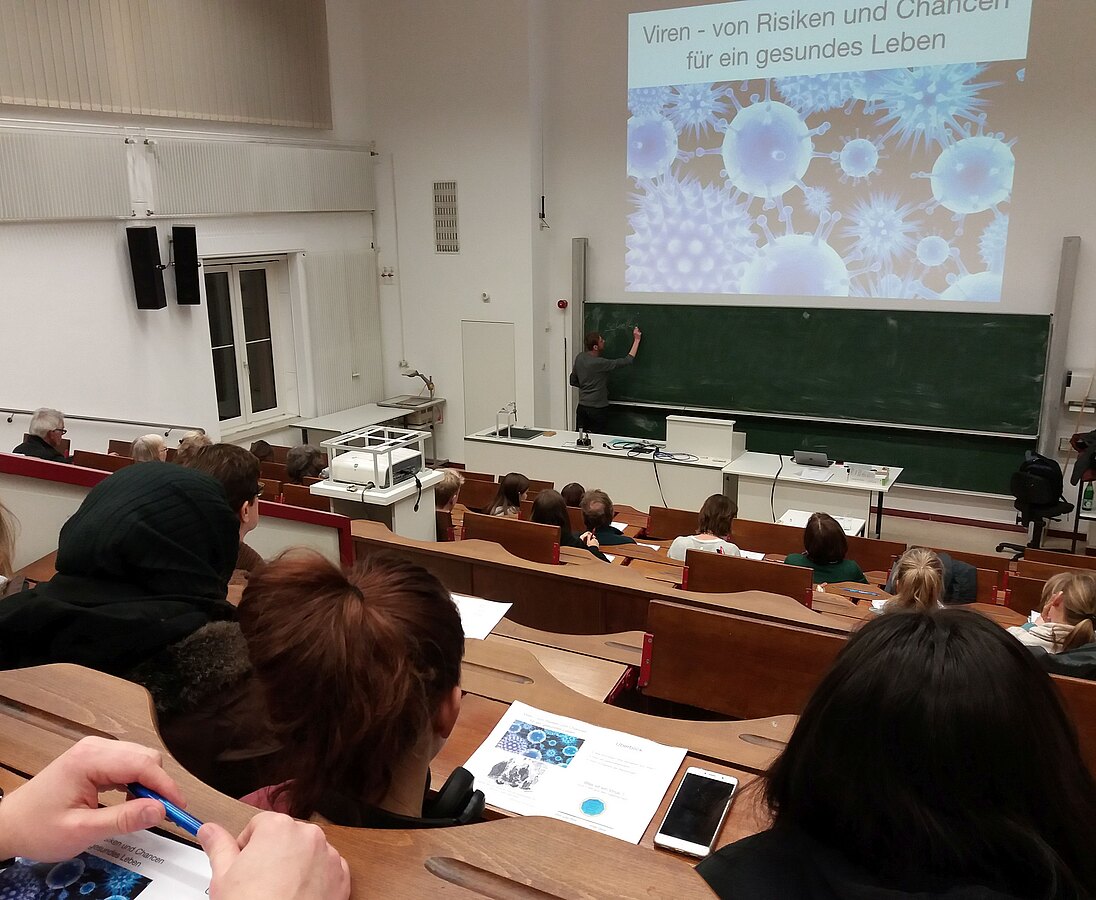 Die Vorlesungen finden für Lehrer*innen und Oberstufenschüler*innen statt, die sich über die Schulbiologie hinaus mit Forschungsergebnissen der modernen Biologie beschäftigen möchten.