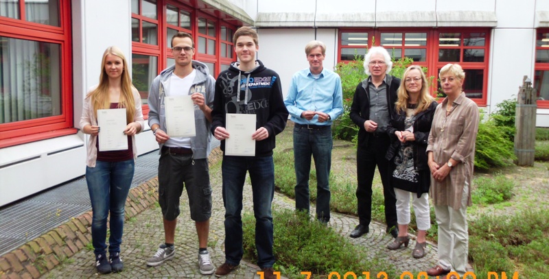 Erfolgreich vorbereitet wurden die Schülerinnen und Schüler in diesem Jahr von der Italienischlehrerin Christel Sablitzky und dem Italienischlehrer Massimiliano Passerini, der seinerseits auch die Prüferzertifizierung für die mündliche Prüfung erworben hatte. Eric Grunenberg, Daria Kasnitz, Lorenzo Schick und Felix Wieczorek trainierten dafür freiwillig mit ihren Lehrern am Nachmittag und wurde am Ende mit sehr erfreulichen Resultaten belohnt. Besonders erfolgreich schnitt Daria ab, die sich die Bestnote sicherte. Herr Schomacher, Geschäftsführer der KAPITO Sprachschule, überreichte dem erfolgreichen Quartett die Zertifikate.