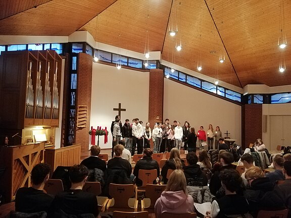 WeiterlesenZu dem Thema "Teilen" trafen sich die Schülerinnen und Schüler der Oberstufe am Freitag,13.12.2024 morgens in der Frühe zur Adventsandacht in der…
