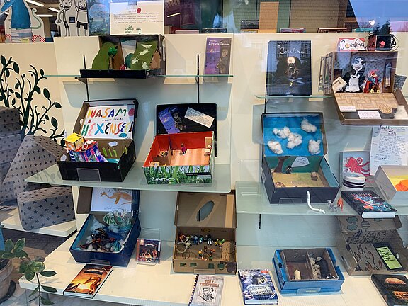 WeiterlesenDie Schüler*innen der Klasse 6a haben zu ihren Lieblingsbüchern Lesekisten gestaltet - als kleine Schaufenster zur Präsentation der Geschichten.