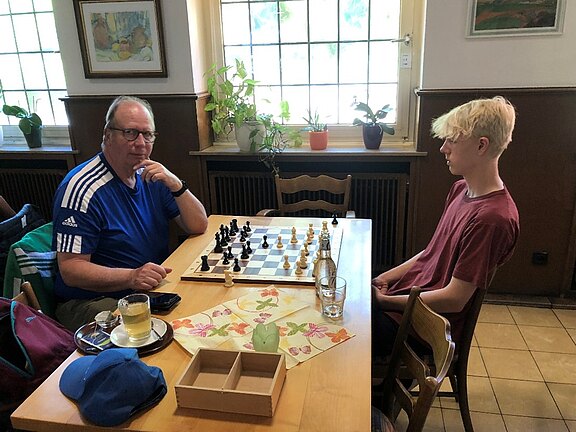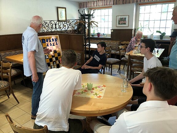 Am 16.6.2023 war es soweit, dass erste „Auswärtsspiel“ der Schach-AG des GSG stand an. Wie war es gekommen? Schach-AG-Leiter Peter Spillmann suchte schon länger nach einem adäquaten Gegner für die Schach-AG. Bei einer Internetrecherche wurde er „im Hansahof“ fündig.