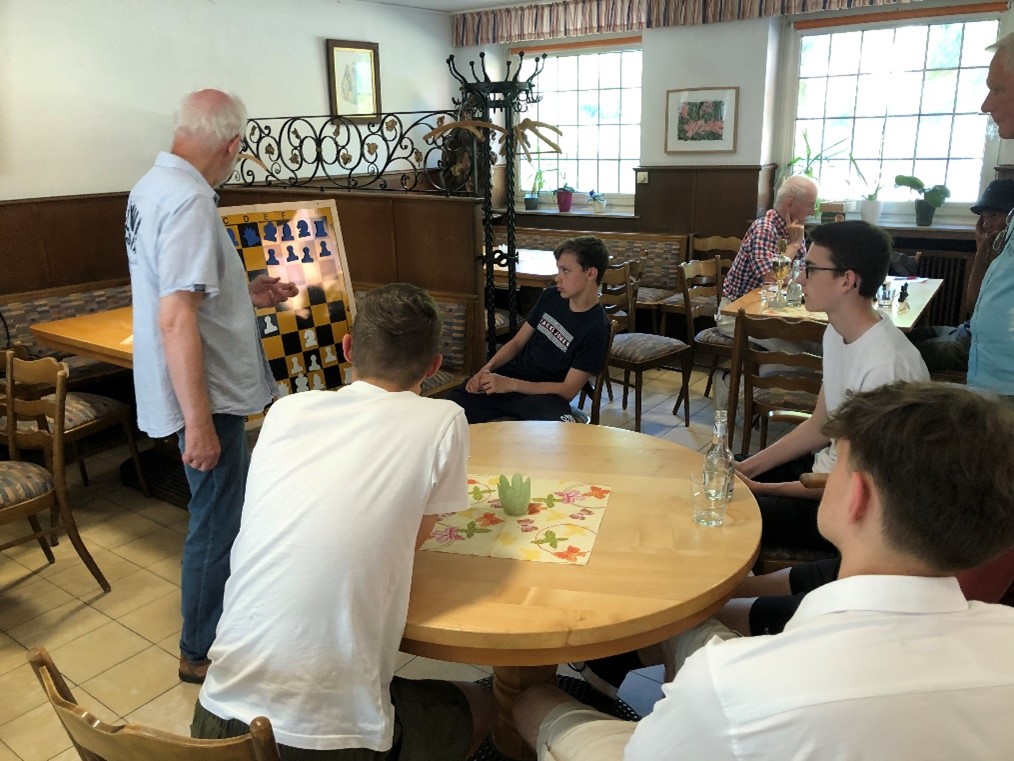 Am 16. Juni 2023 begrüßte der 2. Vorsitzende des Seniorentreffs, Herr Wetterau, acht Schüler/innen des GSG zu einem Vergleichskampf. Nach einem kurzen Update zum Verein Seniorentreff gingen die Spiele an acht Brettern los.