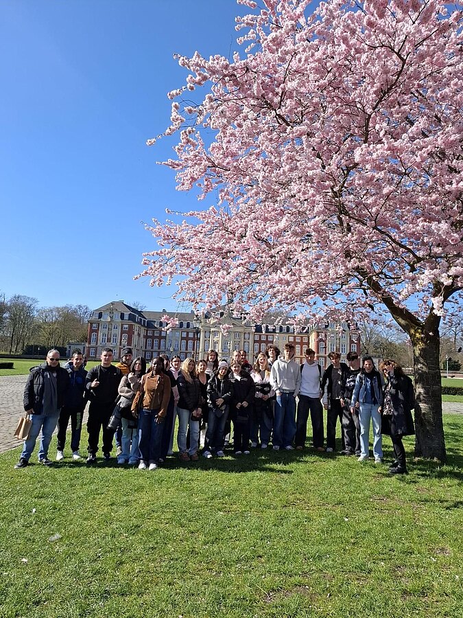 Am Mittwoch nahmen die Gäste zunächst am Unterricht teil und erhielten so einen Einblick in den deutschen Schulalltag. Anschließend ging es gemeinsam in die Innenstadt von Münster, wo eine Stadtführung sowie ein Besuch des Wochenmarktes auf dem Domplatz stattfanden. Zudem wurden der Friedenssaal im historischen Rathaus und das Stadtmuseum besichtigt.