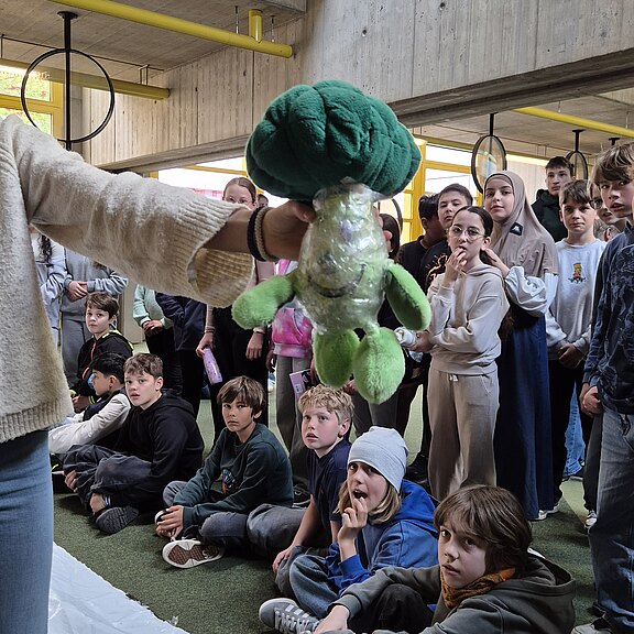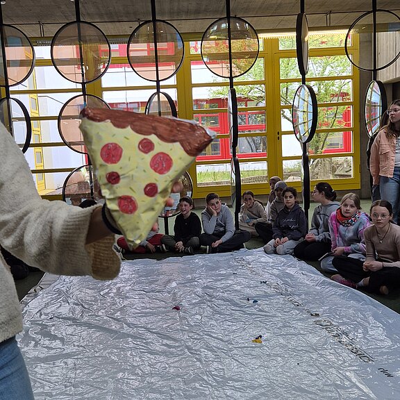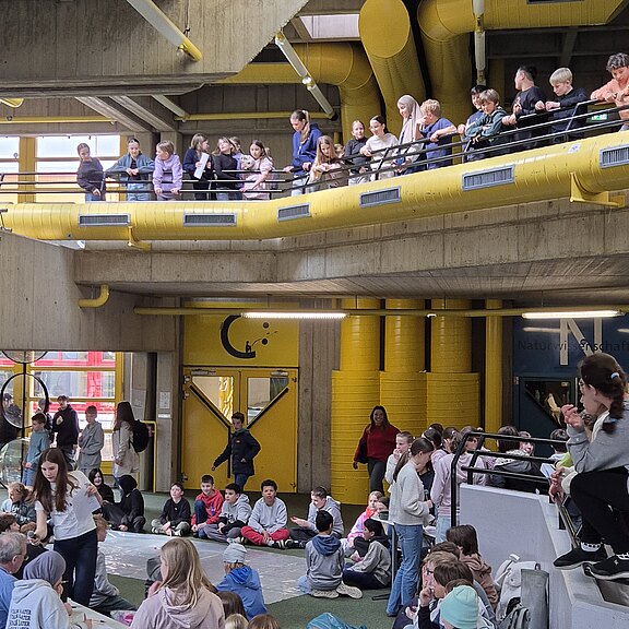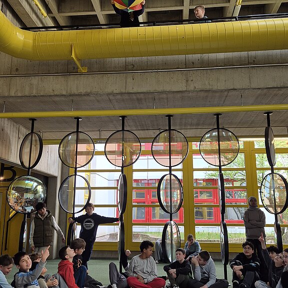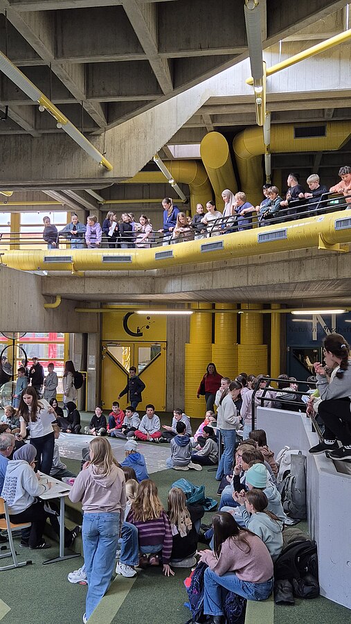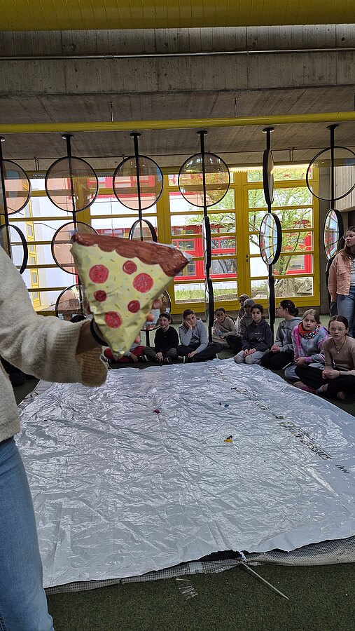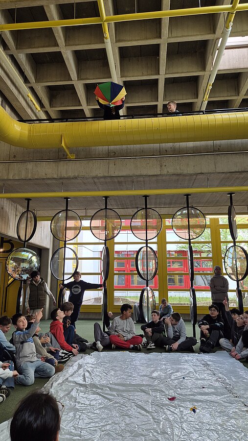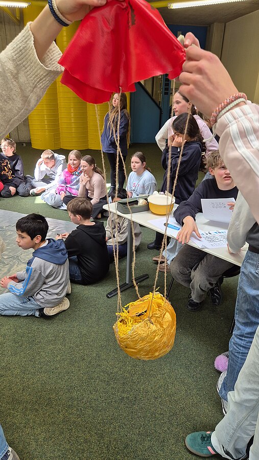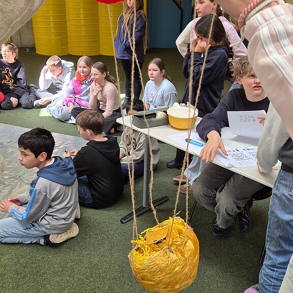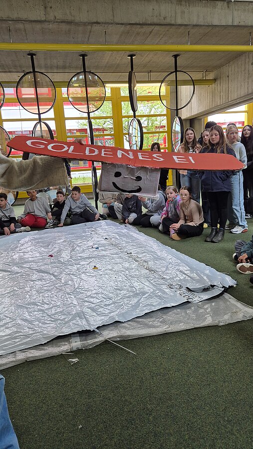Die Kinder können alleine oder in Teams antreten und eine Konstruktion um ein rohes Ei basteln, das dann von der Empore im PZ geworfen wird. Ziel ist zum einen, dass das Ei nicht kaputt geht und zum anderen, möglichst viele Punkte von der Jury zu bekommen.