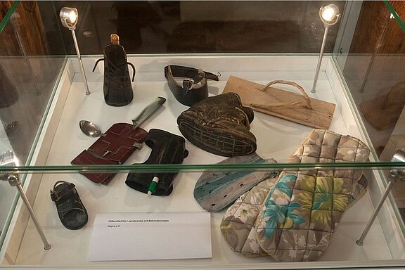 Frau Jahnke bat anschließend einen Schüler nach vorn, um der Klasse zu zeigen, wie sich ein Leprakranker im Vergleich zu einem gesunden Menschen gefühlt hat. Dafür benutzte sie verschiede Alltagsgegenstände, mit denen sie dem Schüler über die Hand strich. Er sollte dabei mit geschlossenen Augen raten, um was es sich handelte. Dann gab sie ihm einen dicken Lederhandschuh und er sollte, diesmal mit dem Handschuh, erraten, welcher Gegenstand es war. Das ist ihm dann doch deutlich schwerer gefallen, da man durch den Handschuh fast nichts spürt. Für Leprakranke war das sehr schlimm, denn sie bemerkten Verletzungen und Entzündungen erst sehr spät, sodass die Behandlung umso schwieriger und das Ausmaß immer größer wurde.
