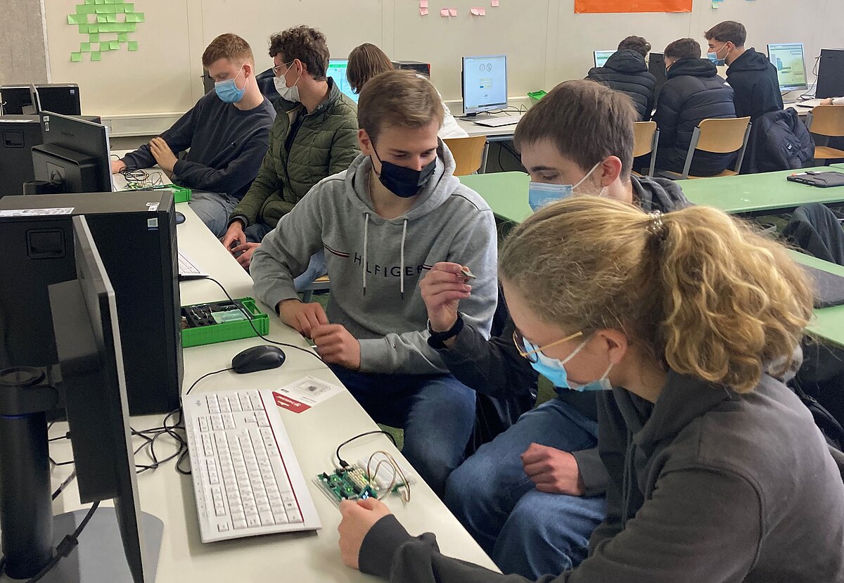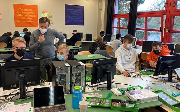 In einem zweiten praxisorientierten Teil konnten die Schüler*innen unter Anleitung von Dr. Thomas Bartoschek und seinem Team vom Institut der Geoinformatik der WWU selber Daten erheben und erfahren, wie diese für eine zukunftsorientierte Stadtentwicklung einfließen könnten. Hierzu programmierten sie mit der senseBox ihre eigene Messstation, mit der sie Umweltdaten erheben und auswerten konnten. So wurden zum Beispiel die Feinstaubbelastungen an der Von-Humboldt-Straße direkt vor der Schule und an der Bushaltestelle an der Kristiansandstraße gemessen.