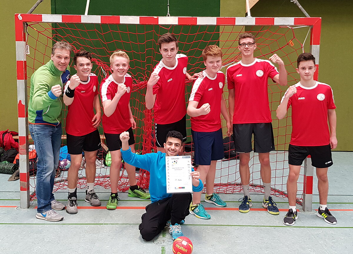 Mit diesem Sieg qualifizierten sich unsere Handballer als eine von insgesamt vier Mannschaften für die Regierungsbezirksmeisterschaften in Bottrop. Dort treffen wir am 20. Februar 2019 auf die Teams vom Joseph-Haydn-Gymnasium Senden, vom Josef-Albers-Gymnasium Bottrop und vom Gymnasium Remigianum Borken.