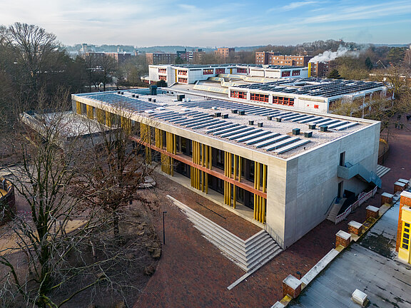 "Wir hatten massive Lieferschwierigkeiten bei Elektro- und Stahlkomponenten", erläutert Projektleiterin Heike Raatz vom Amt für Immobilienmanagement. "Daher konnte die Mensa erst etwas später als der übrige Gebäudeteil in Betrieb gehen." Auf dem Dach wurde eine Photovoltaik-Anlage installiert. Auch der Schulhof für die Grundschule wurde umgestaltet mit neuen Spielflächen und -geräten.