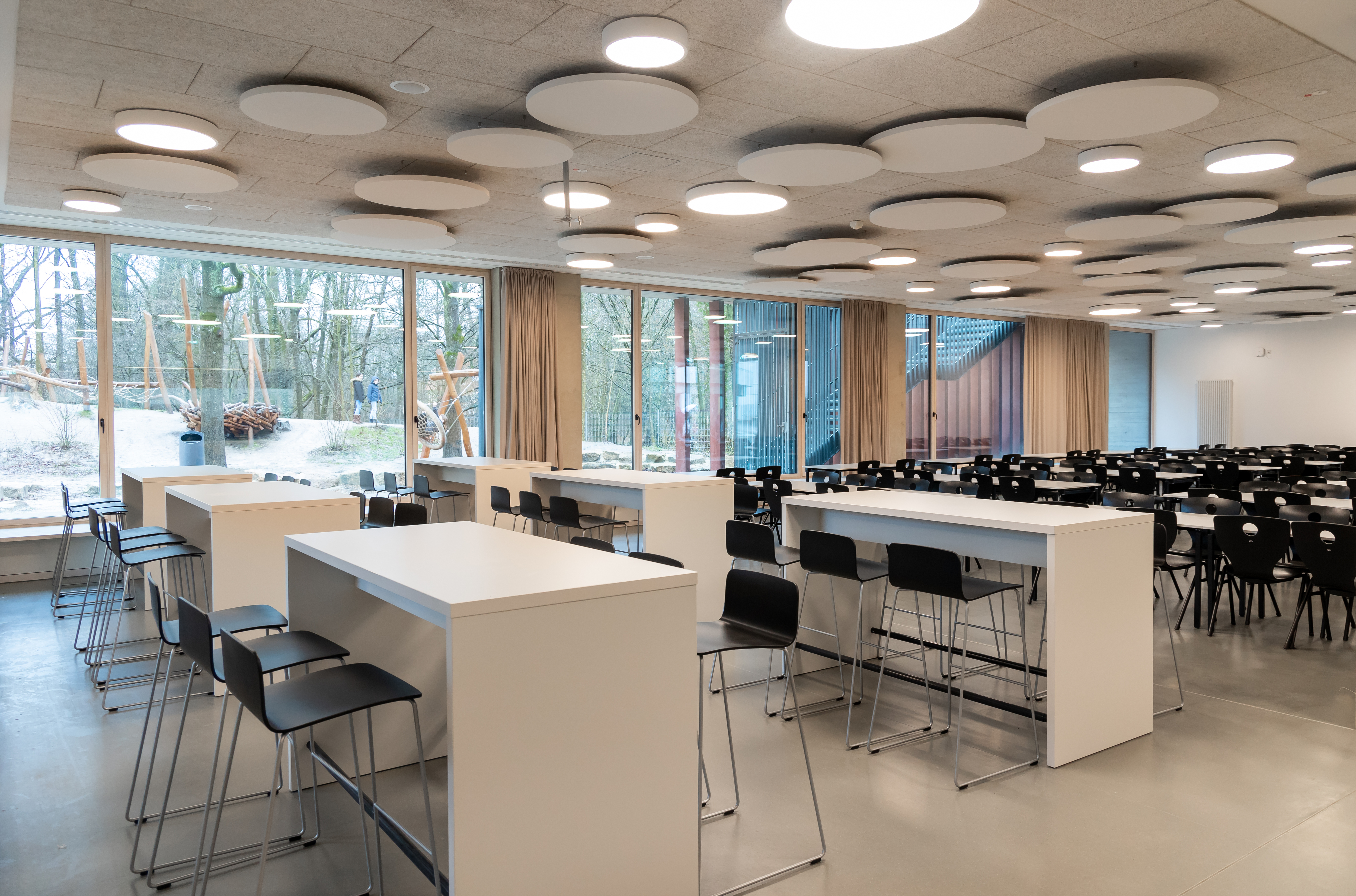 Das Mittagessen wird weiterhin von dem bewährten Lieferanten Apetito geliefert. "Beim Bestellsystem wird sich in naher Zukunft allerdings noch etwas verändern", erläutert unser stellvertretender Schulleiter, Herr Dr. Brinkmann. Rundum zufrieden sind Mitarbeiter*innen, Lehrkräfte und Schüler*innen mit der schallschluckenden Bauweise des Neubaus. "Das ist eine deutliche Verbesserung", freute sich eine der ersten Neukundinnen.