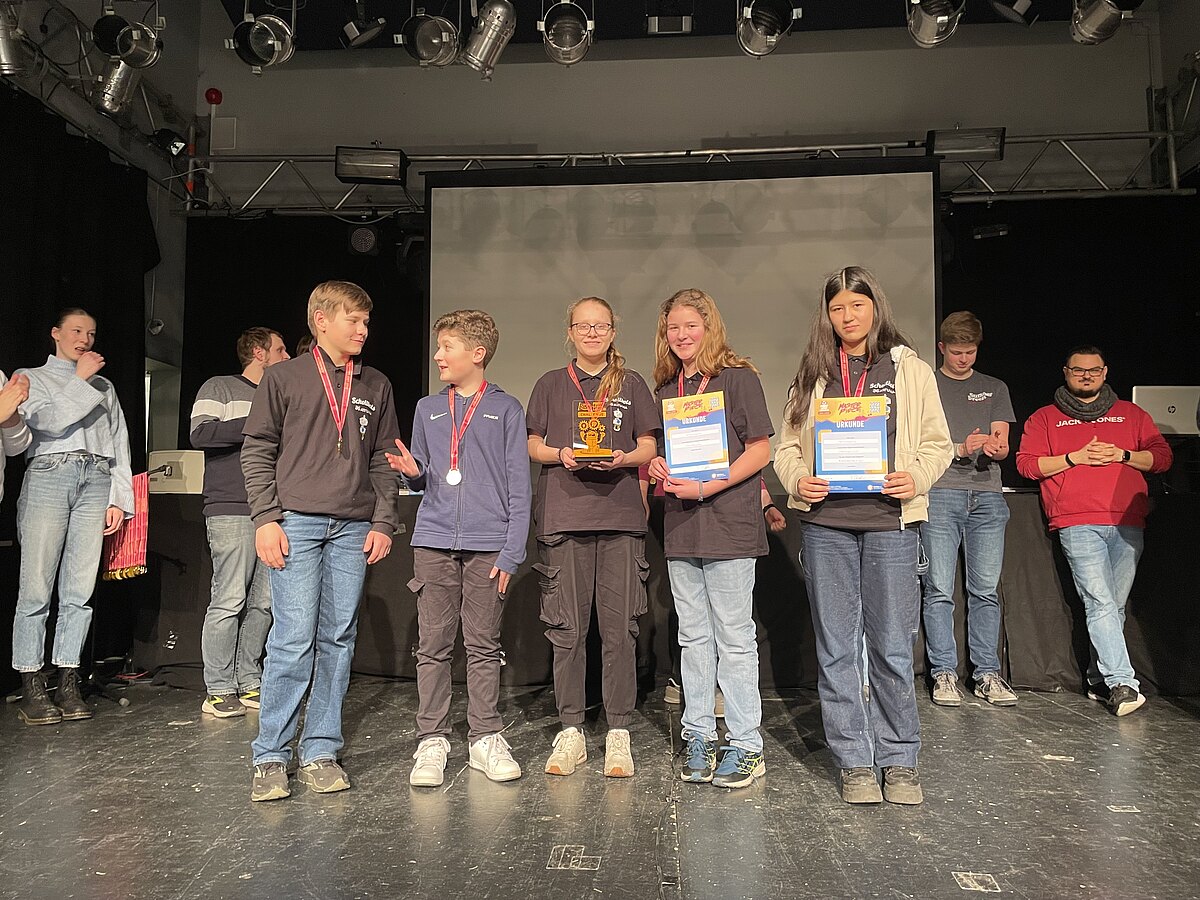 Am Ende blieb es zwar beim 7. Platz und damit konnte das Team nicht mehr im Halbfinale antreten, aber zur Überraschung des Teams gab es tatsächlich doch noch einen Pokal, nämlich für das beste Roboterdesign. Zusätzlich haben die Teamteilnehmer*innen eine Medallie und Urkunde erhalten.