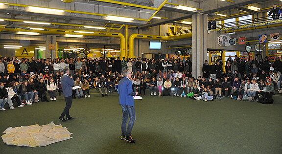 Zum Beginn des Scholl.Tages begrüßten die beiden Schulleiter die Schulgemeischaft mit einer kurzen Eröffnungsrede. Hier geht es zum TEXT.