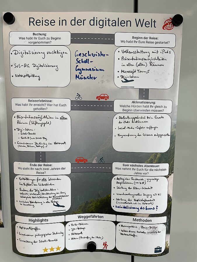 Das letzte Treffen des Programms SIDDW fand am 14.03.2024 und 15.03. in Essen im Essen-Ruhr-Tower statt. Es war ein Treffen der Rückblicke, aber auch mit Blicken in die Zukunft - "Wie weit sind die Visionen vom ersten Treffen bereits in die Gegenwart gerückt?". Unsere Reise im Förderprogramm konnten wir noch einmal auf einem Plakat festhalten.