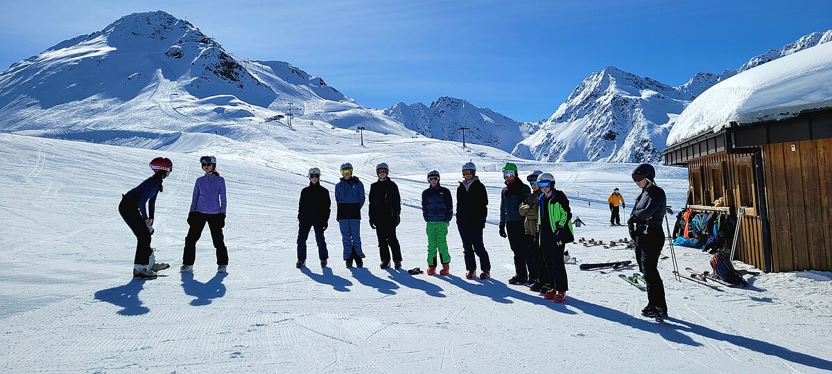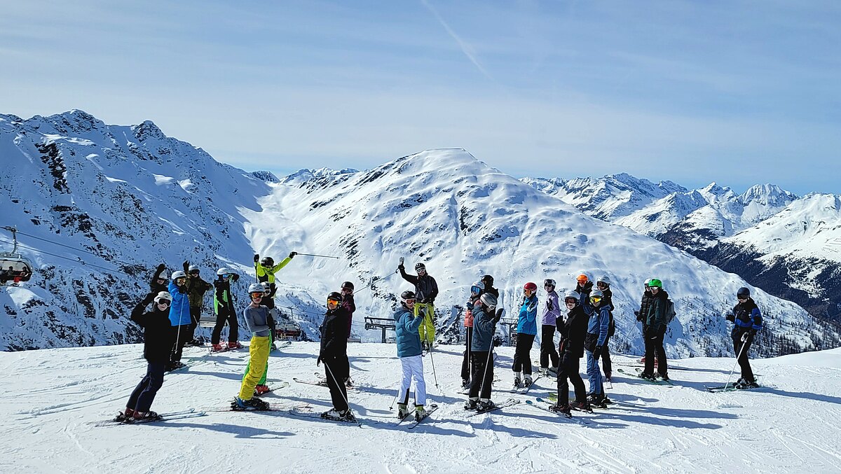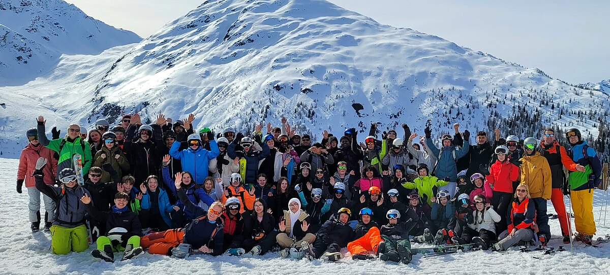 Insgesamt 75 Schülerinnen und Schüler und acht Lehrerinnen und Lehrern genießen die ereignisreichen und anstrengenden Skitage bei bestem Schnee- und Wetterbedingungen.