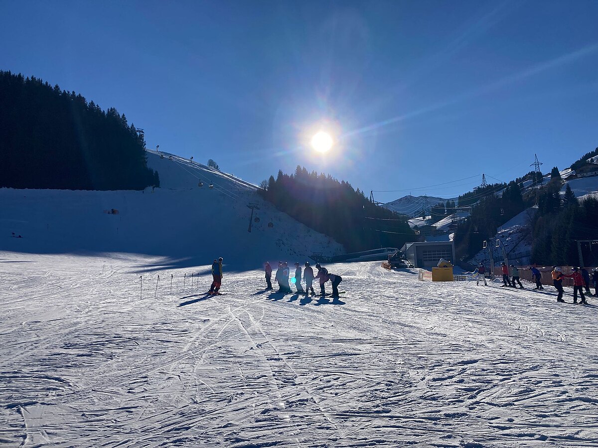Am ersten Tag stand noch kein Skifahren auf dem Programm. Stattdessen wurden die Skiausrüstungen ausgeliehen, die Zimmer bezogen und der Ort erkundet. Am darauffolgenden Tag ging es dann endlich auf die Piste. Bei strahlendem Kaiserwetter trafen sich alle Gruppen zunächst am Anfängerhügel. In Kleingruppen lernten die Schülerinnen und Schüler von Grund auf das Skifahren und erzielten schnell sichtbare Fortschritte und viele Erfolgserlebnisse. Unterstützt wurden die Lehrkräfte dabei von Schülerinnen und Schülern, die in den Vorjahren von Herrn Michalzik ausgebildet worden waren.