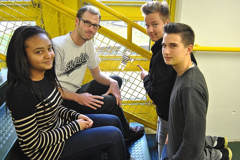 Das waren Fragen, mit denen sich jetzt die Schüler der Kunstkurse der Einführungsphase am Geschwister-Scholl-Gymnasium beschäftigten. Unter dem Motto: „Interpretiere Deine Stadt neu, sie gehört Dir“ führte der Designstudent und Gestaltungstechniker Leif Wellmanns in die Welt der Street Art Kunst ein. Die Schüler lernten diese nicht-kommerzielle Form von Kunst im öffentlichen Raum nicht nur theoretisch, sondern auch praktisch kennen – ihre Schule wurde durch Gimmicks, Cutouts, Sticker und Skulpturen zur Straße der Kunst. Und die Schüler konnten sich an der Architektur des Schulzentrums mit eigenen kreativen Ideen ausprobieren – Prof. Deilmann, der Architekt der siebziger Jahre, hätte es sicher mit Freude gesehen.