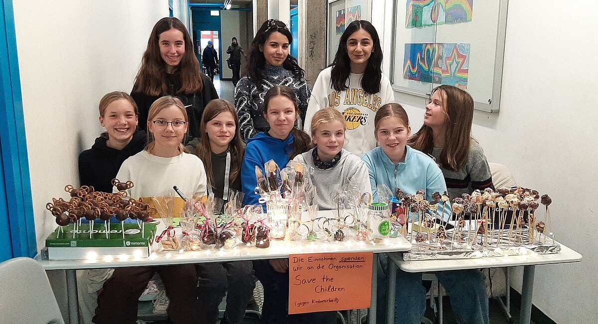 Wie fast jede Klasse hatte die 7b einen Verkaufsstand, mit einer Besonderheit:die Einnahmen sollten an die Organisation „save the children” gespendet werden. Bei Save the Children handelt es sich um eine internationale Nichtregierungsorganisation, welche 1919 in London von der Lehrerin und Sozialreformerin Egalntyne Jebb, einer politisch unabhängigen Frau, gegründet wurde. Save the Children setzt sich für Kinderrechte auf der ganzen Welt ein und die Organisation ist auch für Entwicklungszusammenarbeit, Flüchtlingsfürsorge, Gesundheitshilfe uns Katastrophenhilfe zuständig. Die Klasse entschied sich, Geld für den Einsatz gegen Kinderarbeit zu spenden, denn: Kinderarbeit wird oft als moderne Sklaverei bezeichnet und Kinder werden dadurch physisch, mental, geistig, moralisch sowie sozial beeinträchtigt. Wenn sie z.B. auf Feldern arbeiten, wo Chemikalien und Düngemittel eingesetzt werden, bekommen sie chronische Gesundheitsprobleme und Wachstumsprobleme. Dieses Leid ist nicht zu ertragen und dem muss ein Ende gesetzt werden.