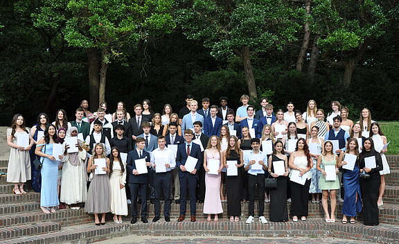 Im Rahmen einer stimmungsvollen Entlassfeier blickten Bezirksbürgermeister, Eltern, Schüler*innen, Stufenleitung und Schulleitung auf drei Jahre Oberstufe zurück – Jahre, die laut Rede einem klassischen Drama glichen, mit allem, was dazugehört: einem chaotischen Beginn, überraschenden Wendungen, dramatischen Höhepunkten und schließlich einem Happy End: Alle 62 Schüler*innen der Abiturientia 2025 haben das Abitur bestanden.