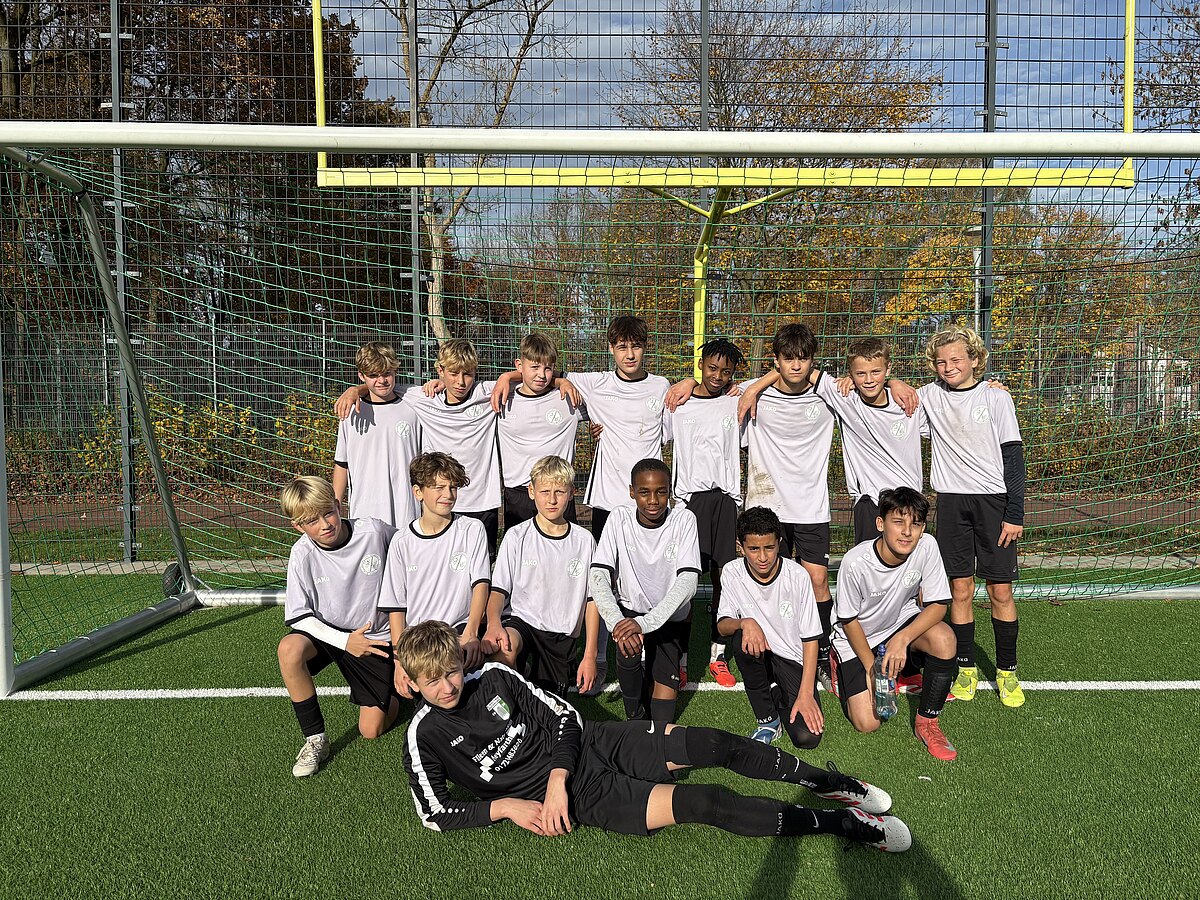 Zuvor hat unsere Schulmannschaft die Gruppenphase auf der Sportanlage „Sentruper Höhe“ mit drei Siegen und einem Unentschieden abgeschlossen. Im Halbfinale wurde die Mannschaft des Freiherr-vom-Stein-Gymnasiums knapp mit 1:0 Toren besiegt. Das Tor für fiel bereits in der 1. Minute.