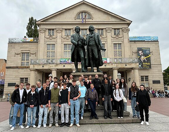 Mit diesen und anderen Fragen befassten sich 37 Schüler*innen aus der EF während ihrer dreitägigen Exkursion nach Weimar und zur Gedenkstätte Buchenwald. Während sie sich in der Stadt der deutschen Klassik mit Selbsterkundungsmaterialien auf die Spuren von Goethe und Schiller begaben, setzten sie sich auf dem sieben Kilometer entfernten Ettersberg mit der Geschichte eines Konzentrationslagers auseinander. Der Besuch des Bauhaus-Museums diente der eigenständigen Beschäftigung mit einem Menschenbild der Moderne. Neben den einzelnen Programmpunkten hatten die Schüler*innen ausreichend Freizeit, um Weimar und seine kulturellen Angebote selbstständig zu entdecken oder die Annehmlichkeiten des Hotels Leonardo zu genießen. Nach ihrer Rückkehr aus Weimar blicken alle Mitfahrenden auf eine ereignisreiche gemeinsame Zeit mit wertvollen Erinnerungen zurück!