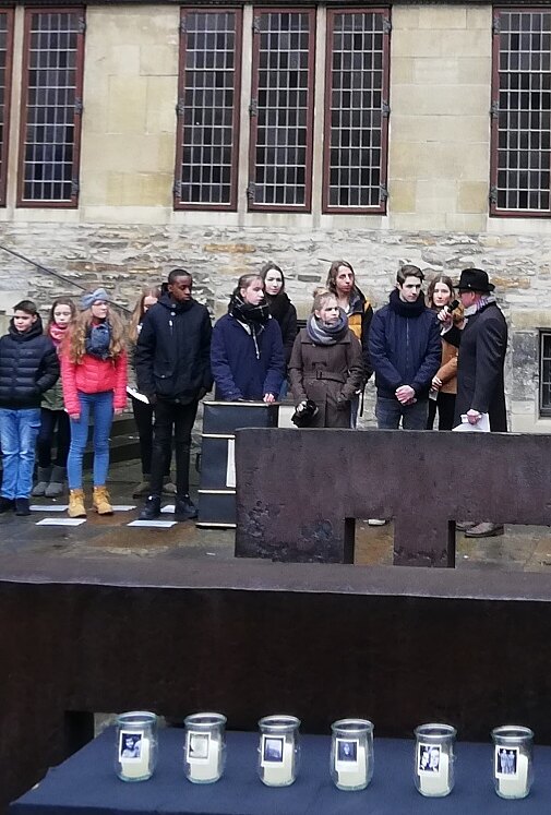 Neben einigen Reden wurden Schüler*innen zu den Projekten an ihren Schulen interviewt. Anschließend wurde der verschiedenen Opfergruppen gedacht und es wurden Kerzen für sie angezündet. Das gemeinsame Gedenken auf dem Platz des Westfälischen Friedens hat bei allen einen bleibenden Eindruck hinterlassen.