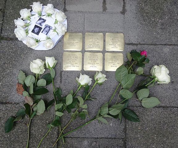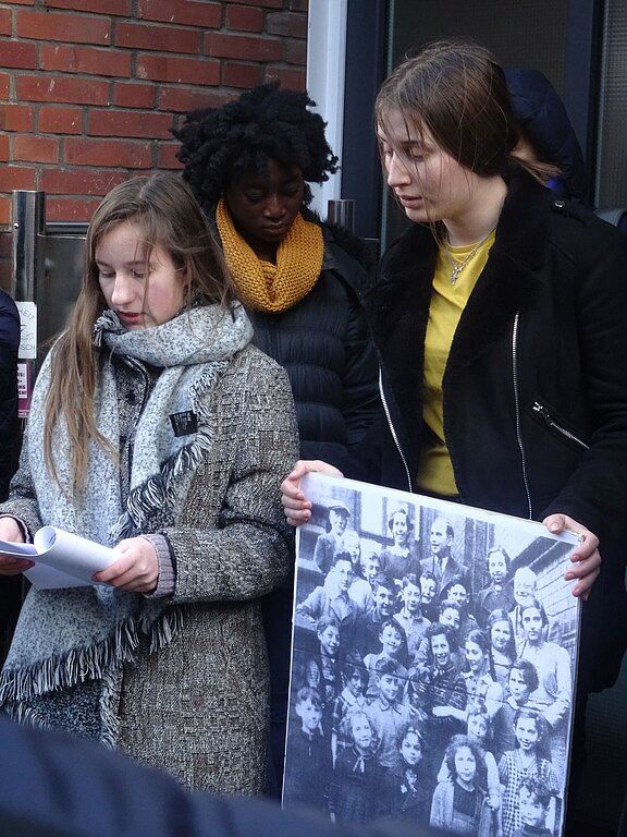 2019 hat unsere Schule die Patenschaft für einen Stolperstein übernommen. Am 9. Februar wurde der Stein mit fünf weiteren in der Graelstraße 37 verlegt; er ist einem Jungen namens Karl-Heinz Goldberg gewidmet, der im Dezember 1941 mit seiner Familie nach Riga deportiert wurde und kurze Zeit später im Arbeitslager an Kälte, Hunger und unmenschlichen Arbeitsbedingungen verstarb. Karl- Heinz wurde nur 15 Jahre alt. Seinem Gedenken und der zukünftigen Wahrung hat sich der EF-Geschichtskurs von Frau Engemann gewidmet, der kommende Geschichts-Leistungskurs wird dieses Gedenken fortsetzen.