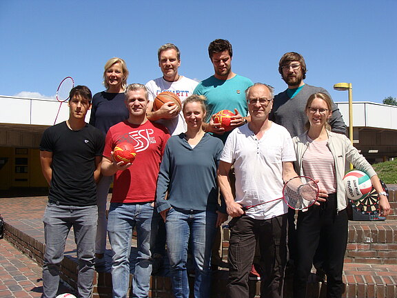 Zur Fachschaft Sport gehören an unserer Schule folgende Kolleginnen und Kollegen: Andreas Bischoff (bis 2022), David Dücker, Marius Förster, Tanja Hansen, Josef Karsten, Thorsten Ludwig, Stephanie Sander, Mathis Michalzik, Peter Spillmann (bis 2024), nicht auf dem Bild: M. Natrup