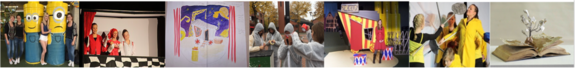 - Gestaltungen von Bildern, Comics und Büchern, Objekten und Texten, Performances und szenischen Experimenten unter Einsatz von unterschiedlichsten Medien, Kostümierungen und Bühnenbildern, Sprach- und Textspielen und vielem mehr.