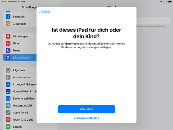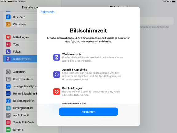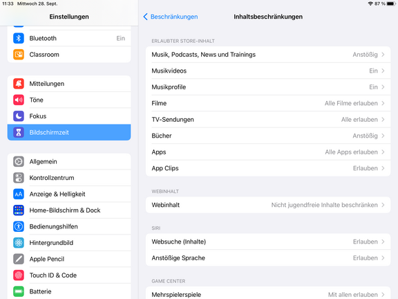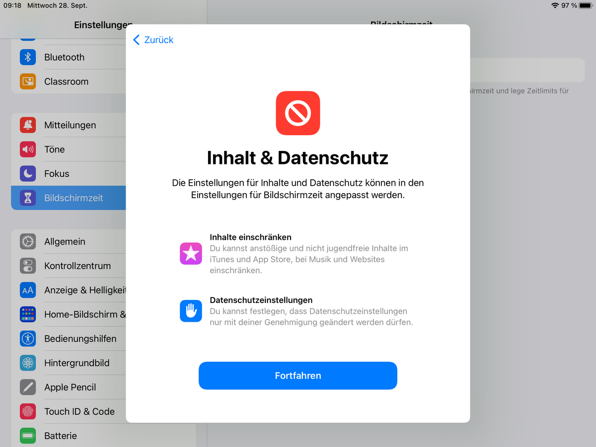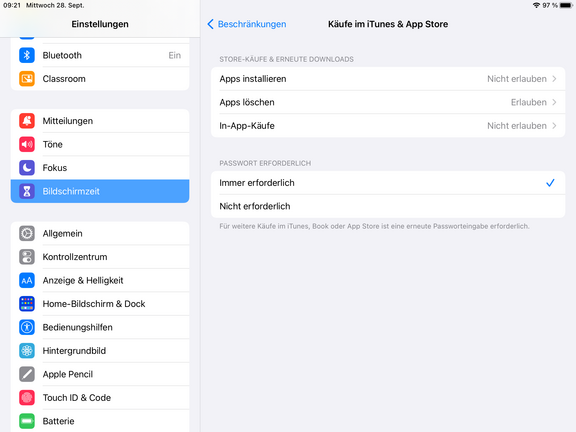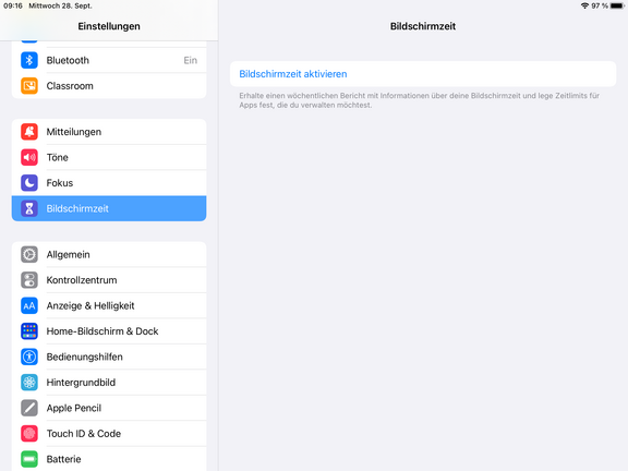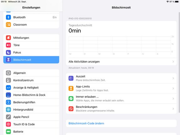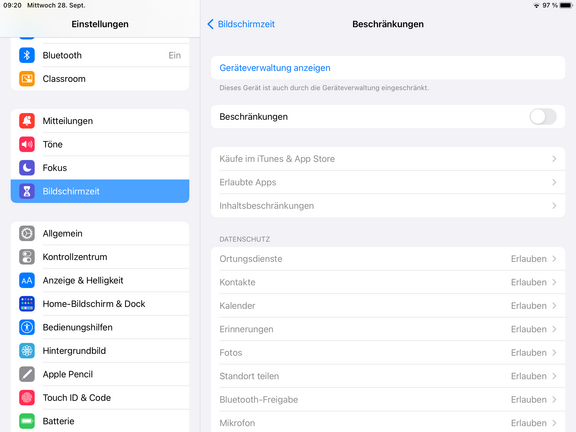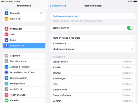 Durch die Konfiguration der Bildschirmzeit kann das iPad im privaten Modus in der Nutzung eingeschränkt werden.
