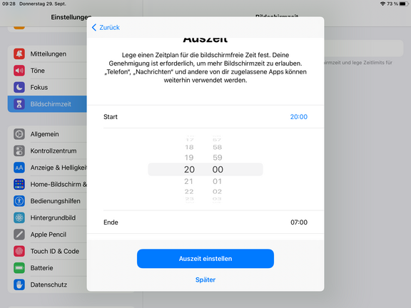 Damit ist die Konfiguration der Bildschirmzeit abgeschlossen.