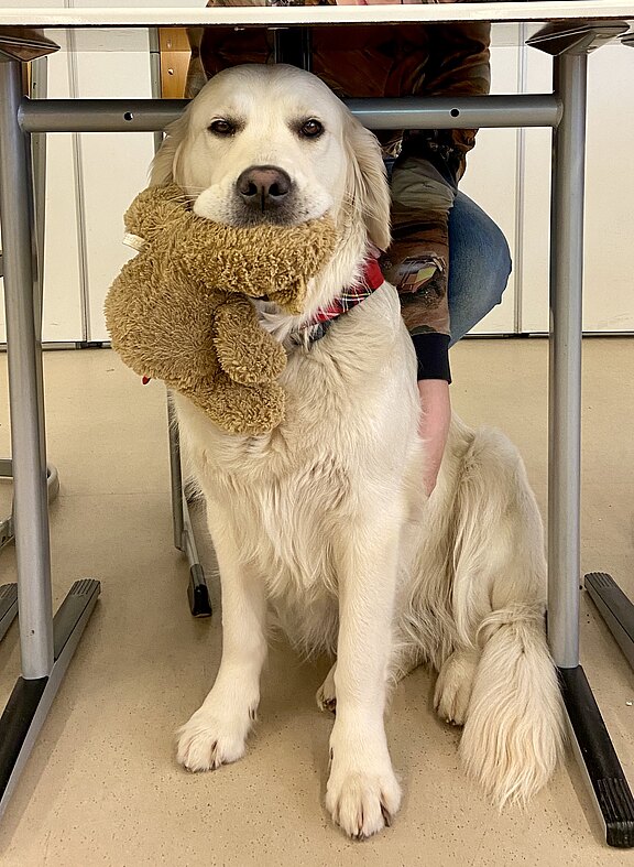 Wenn Schüler*innen keinen Kontakt mit dem Schulhund haben wollen oder Allergien haben, können sie das natürlich jederzeit sagen und müssen Tilda nicht begegnen.